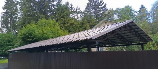 Двускатный навес из металлочерепицы коричневого цвета Арт-648