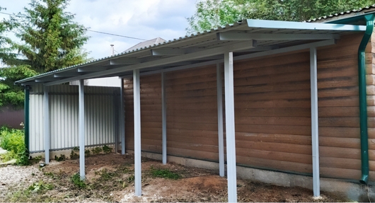 Односкатный серый навес-пристройка из профнастила Арт-729
